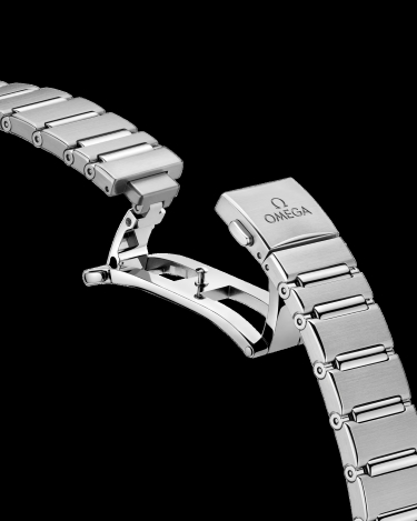 6 o'clock position. The hands, OMEGA logo, Constellation star and diamond holders