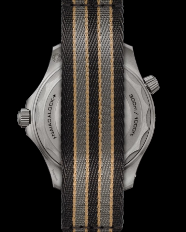 beige with 007 engraved on a titanium loop.The 007-edition Diver is powered by OMEGA's Co-Axial Master Chronometer 8806,