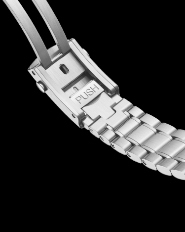 well as a 6 o’clock date window that blends with the colour of the dial. The hands